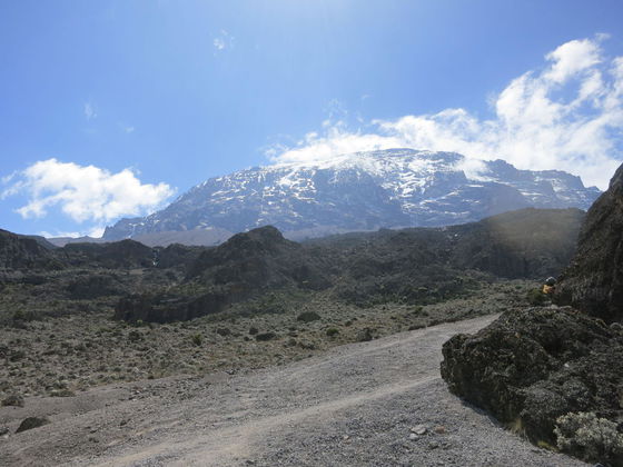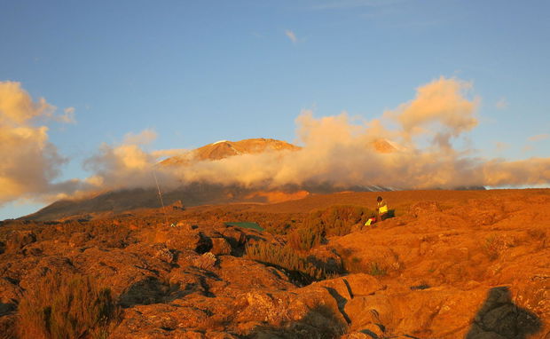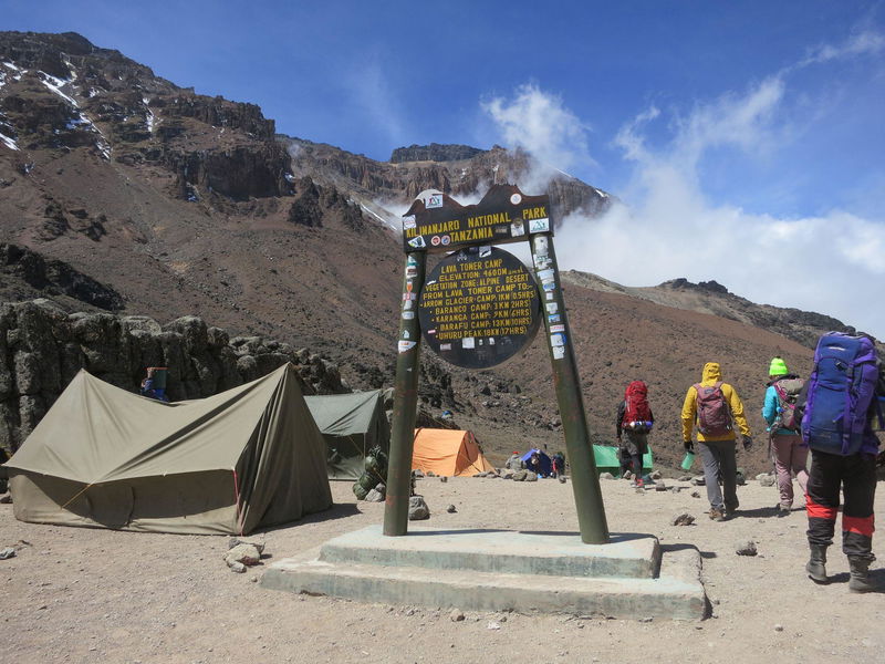 Follow the trail through high-altitude desert directly up the ridge towards Kibo. After about 4 hours you reach Lava Tower at 4,600 m, at the foot of the Great Western Breach. From here the path forks right and descends into the Umbwe/Barranco Valley. Camp is made on the valley floor at Barranco camp (3,985 m). The climb to 4,600 m followed by a descent to 3,800 m is a great aid to acclimatisation and takes about 6–7 hours.