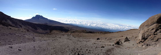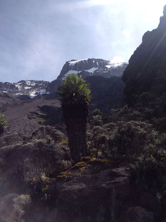 The path then follows the gently undulating Kibo South Circuit. Wonderful views are to be had of Kibo’s southern glaciers if the weather is clear. After about 3 hours the Karanga valley is reached. There is a short but steep climb up the valley, which has a small stream running through it, and then a short climb up the eastern valley wall.
