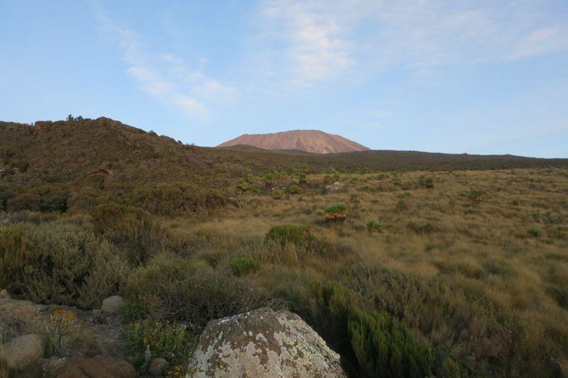 Continue around the northern slopes, descending and ascending a series of remote valleys with distinctive flora. The path heads west toward the Shira Plateau, eventually leading up to Moir Hut at about 4,150 metres. After a day of roughly 4‑5 hours on the trail, you can take an afternoon hike above camp for extra acclimatisation.