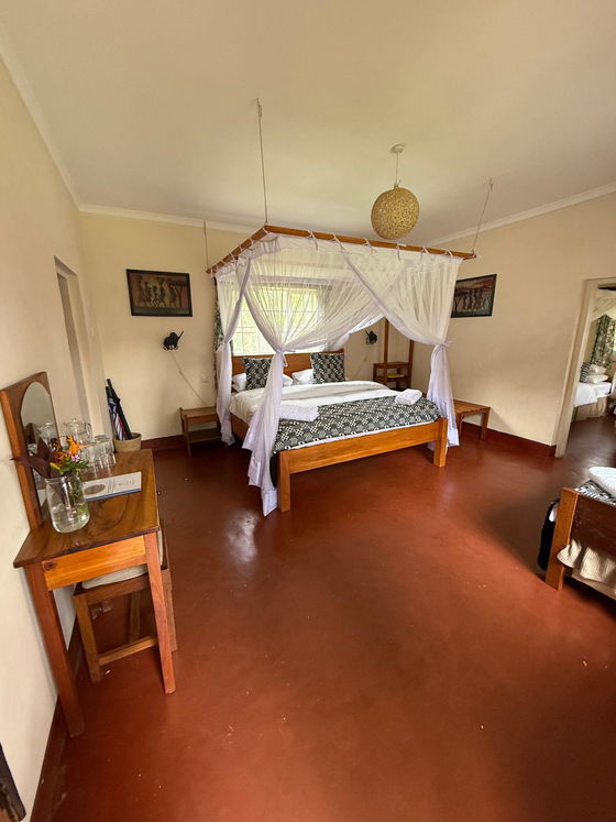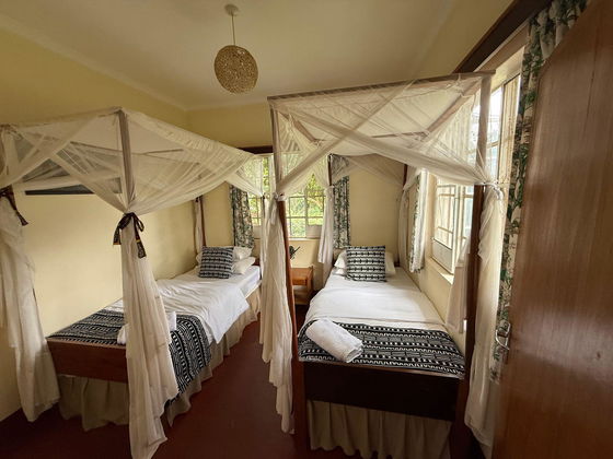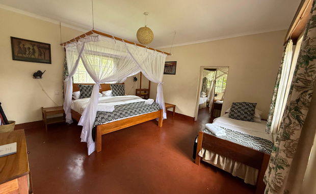 This en-suite Family Room features two sections: one with two single beds, and a main room with a king-sized bed. An additional single bed can be added to accommodate up to five guests.